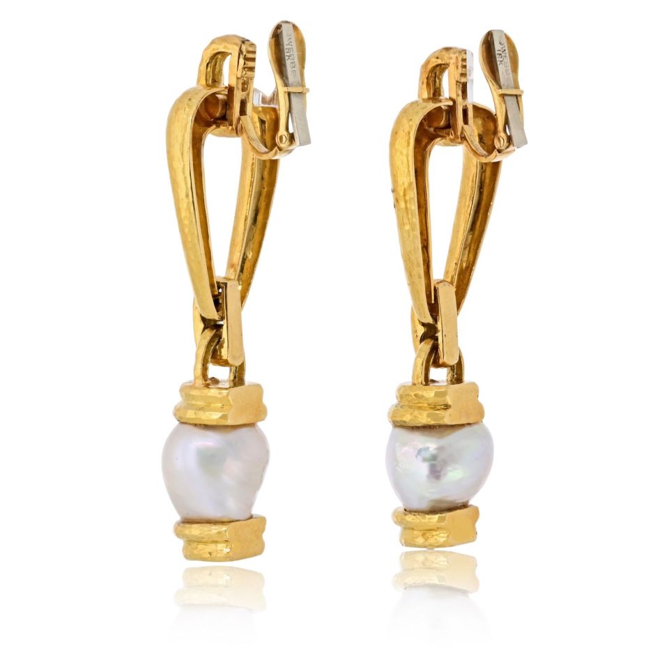 David Webb 18K Yellow Gold Pearl Drop Pendulum Earrings