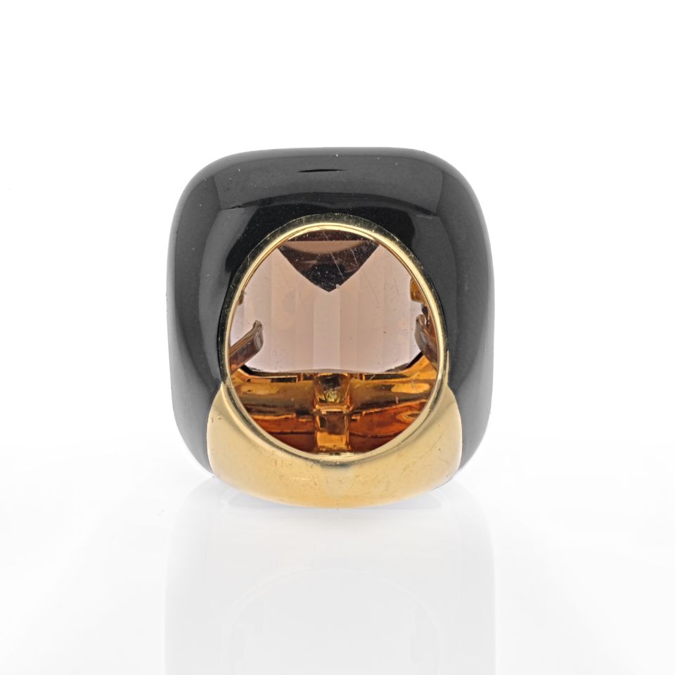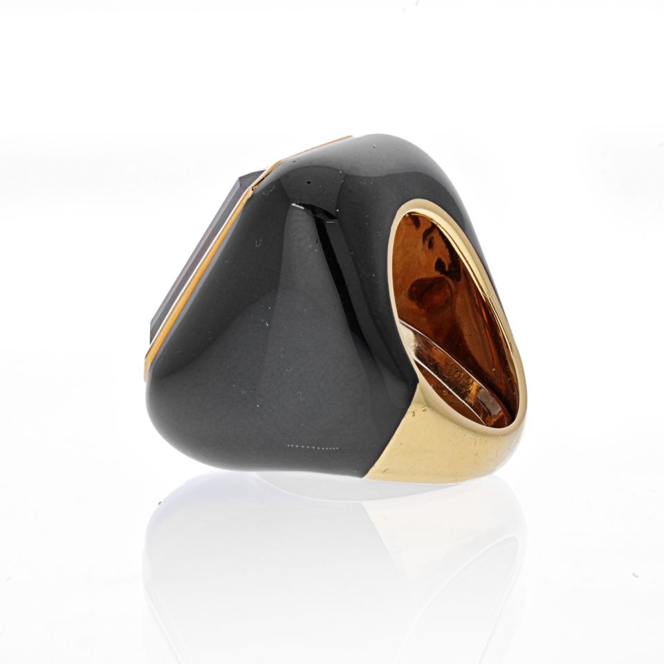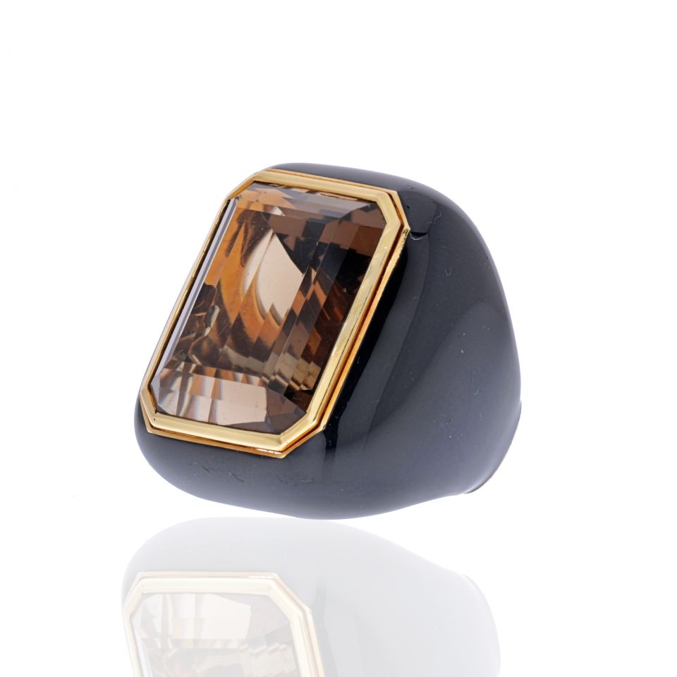 David Webb 18K Yellow Gold Smoky Quartz and Black Enamel Ring