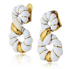 David Webb 18K Yellow Gold White Enamel 1.75 Inches Long Doorknocker Earrings