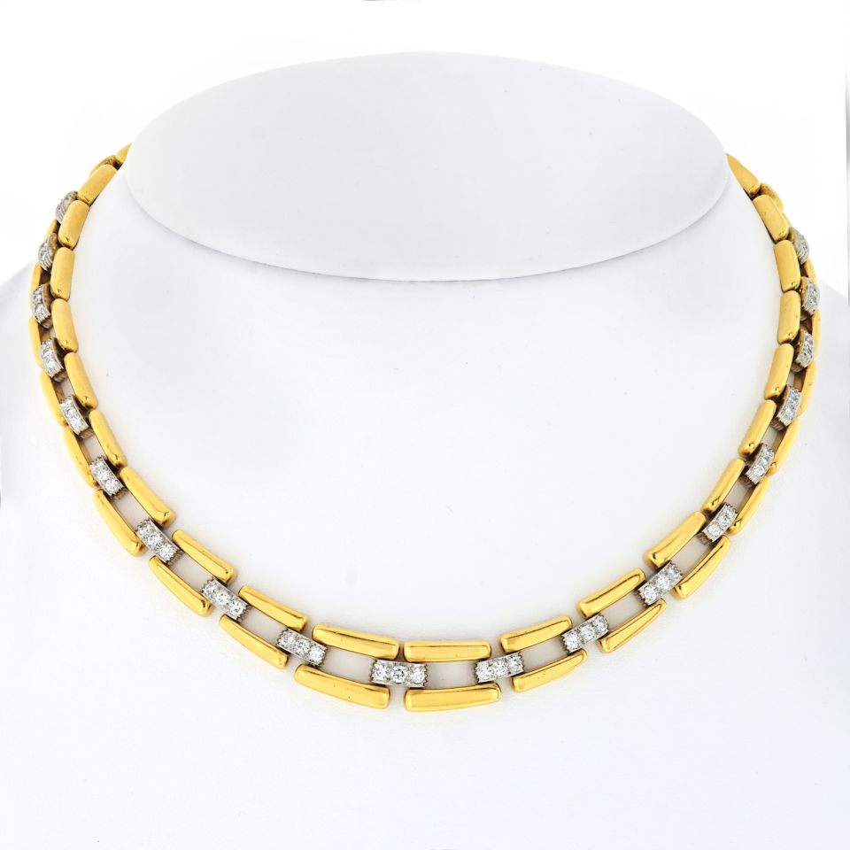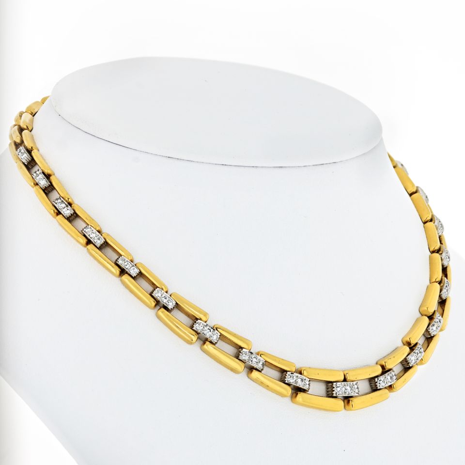 David Webb Collar Platinum & 18K Yellow Gold Open Link Diamond Chain Necklace