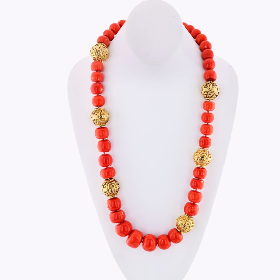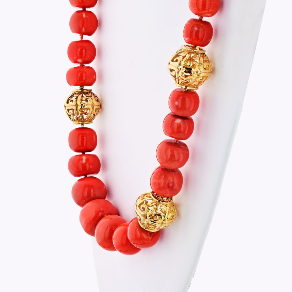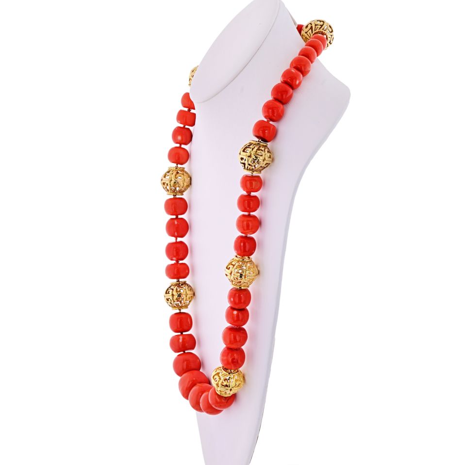 David Webb Coral 18K Yellow Gold Large Coral Balls String Circa 1960s Necklace