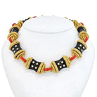 David Webb Platinum & 18K Yellow Gold Coral, Diamonds, Black Enamel Necklace.