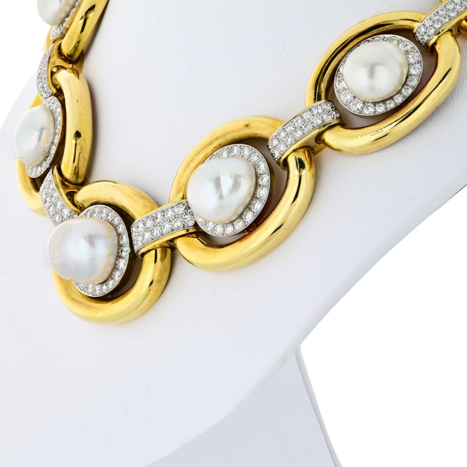 David Webb Pearl Platinum & 18K Yellow Gold Baraque Pearl and Diamond Collar Necklace
