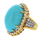 David Webb Platinum & 18K Yellow Gold Large Oval Turquoise And Diamond Ring
