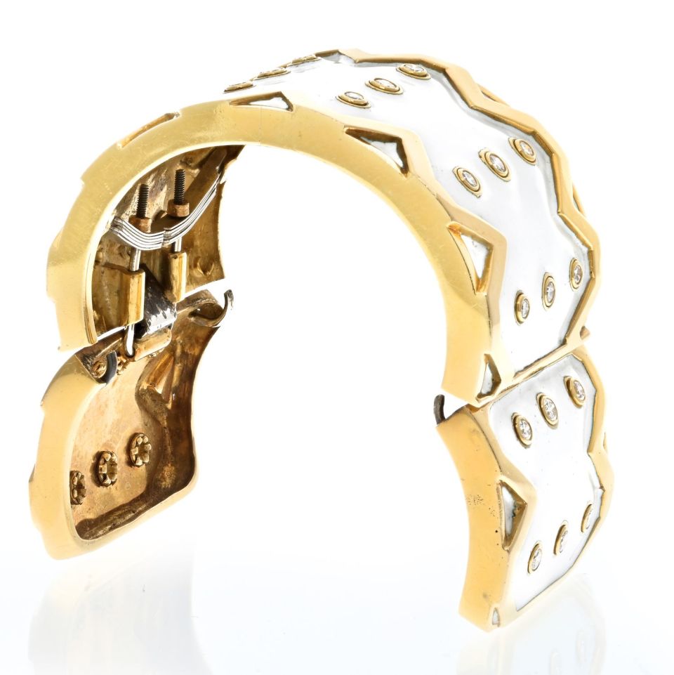 David Webb Platinum & 18K Yellow Gold RickRack White Enamel Diamond Bracelet