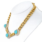 Diamond 18K Yellow Gold Three Station Turquoise And Diamond Necklace