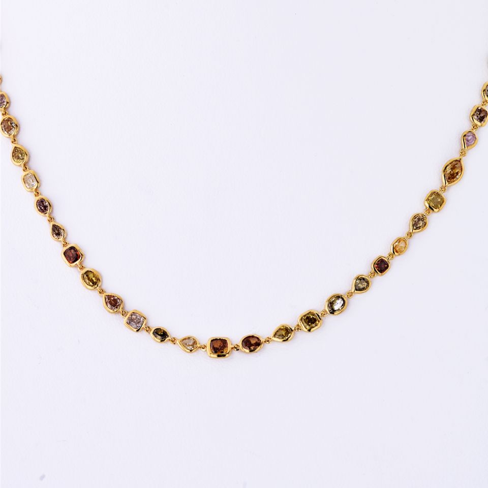 Fancycolor 18K Yellow Gold 10.50 carat Fancy And White Color Diamonds by the Yard Necklace