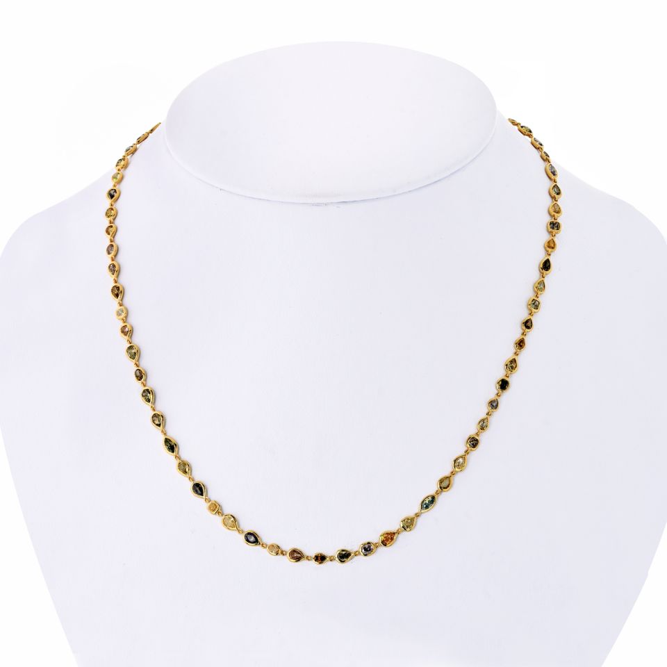FancyColor 18K Yellow Gold All natural multicolor fancy and white Diamonds by the Yard Necklace