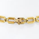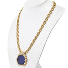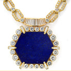 Introducing the 18K Yellow Gold 1970's Diamond Lapis Chain Necklace, an exquisite piece that captures the opulence and distinctive style of the era. Crafted circa 1970, this necklace is a stunning blend of luxurious materials and meticulous craftsmanship.