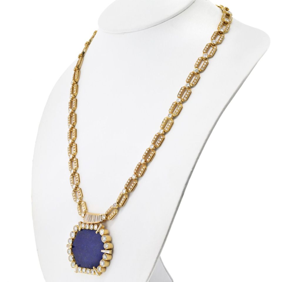 This 18K yellow gold necklace is not only a statement of luxury but also a testament to the timeless appeal of 1970's design. Perfect for any special occasion, this diamond and lapis chain necklace is a versatile addition to any fine jewelry collection.