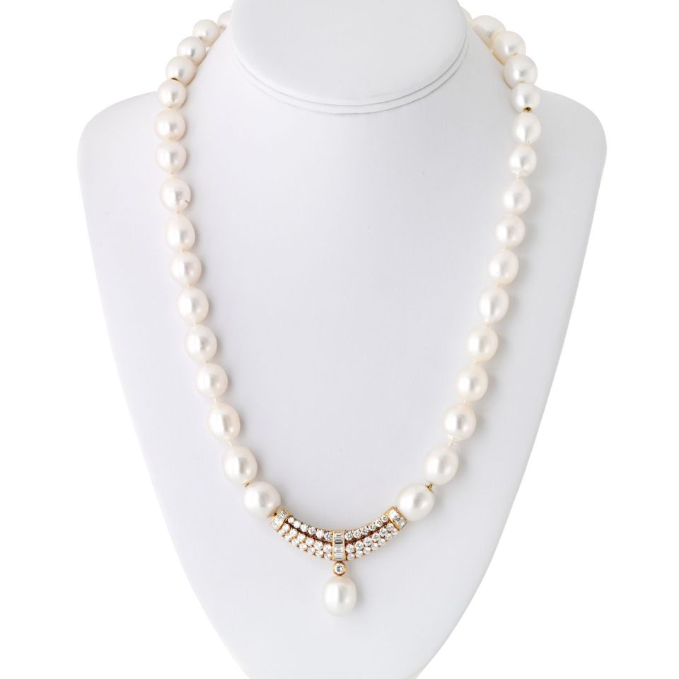Pearl 18K Yellow Gold Mabe Pearl And Diamond Necklace
