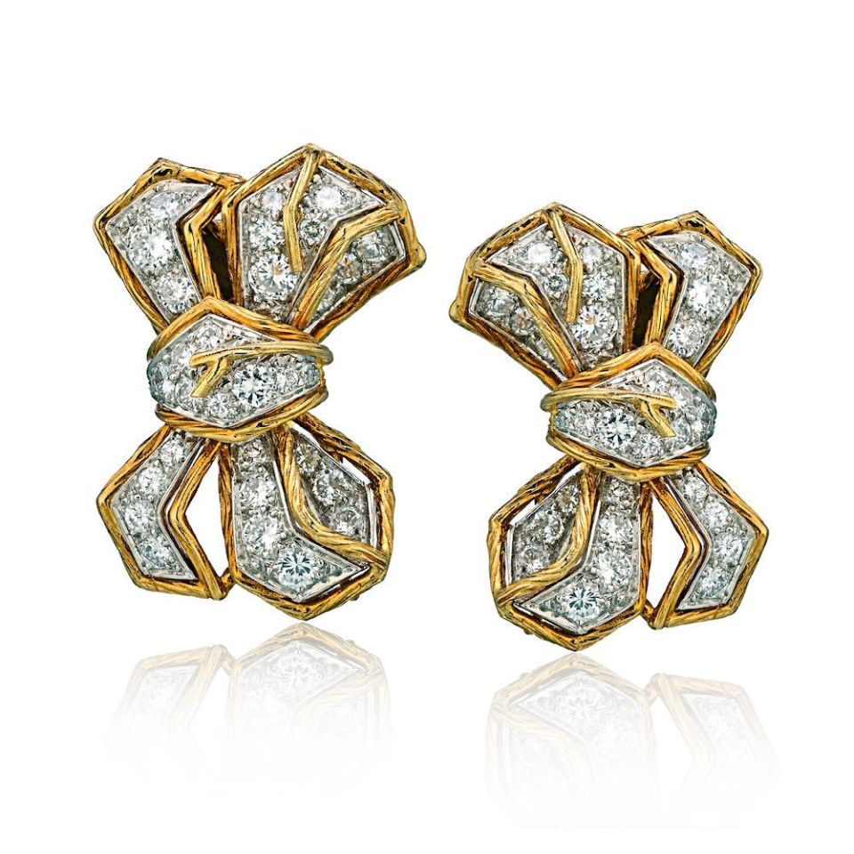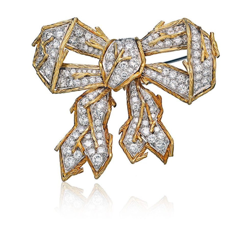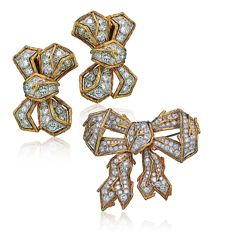 Diamond bow brooch and earrings set by Tiffany & Co.