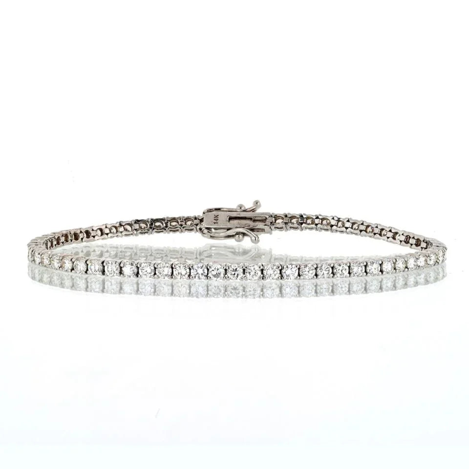 Elevate your wrist with the understated sophistication of this 14K White Gold 4.28cttw Tennis Bracelet. Crafted with precision and finesse, the delicate design of this bracelet adds a touch of elegance to any ensemble.