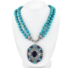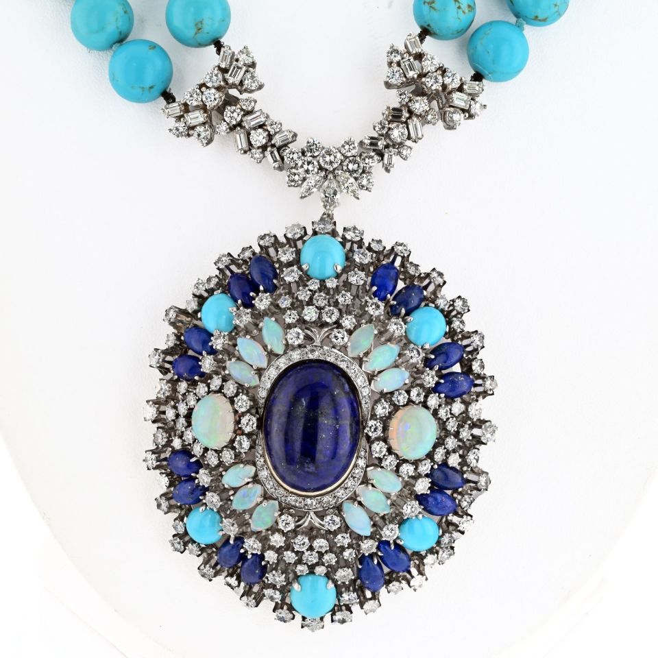 Turquoise 14K White Gold Turquoise, Sapphires, Diamonds, Opals Necklace