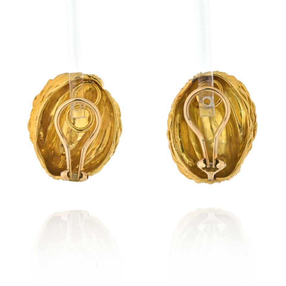 Van Cleef & Arpels 18K Yellow Gold 1970's Brushed Finish Dome Clip Earrings.