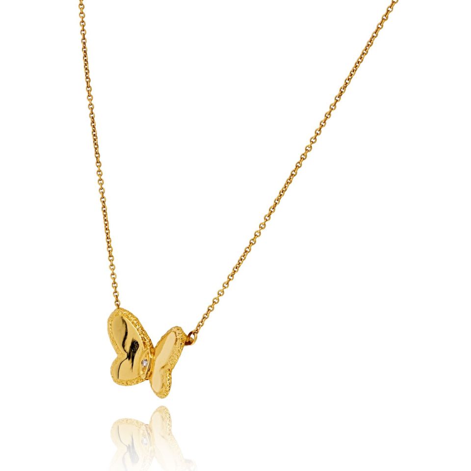 Van Cleef & Arpels 18K Yellow Gold All Gold Vintage Butterfly Necklace