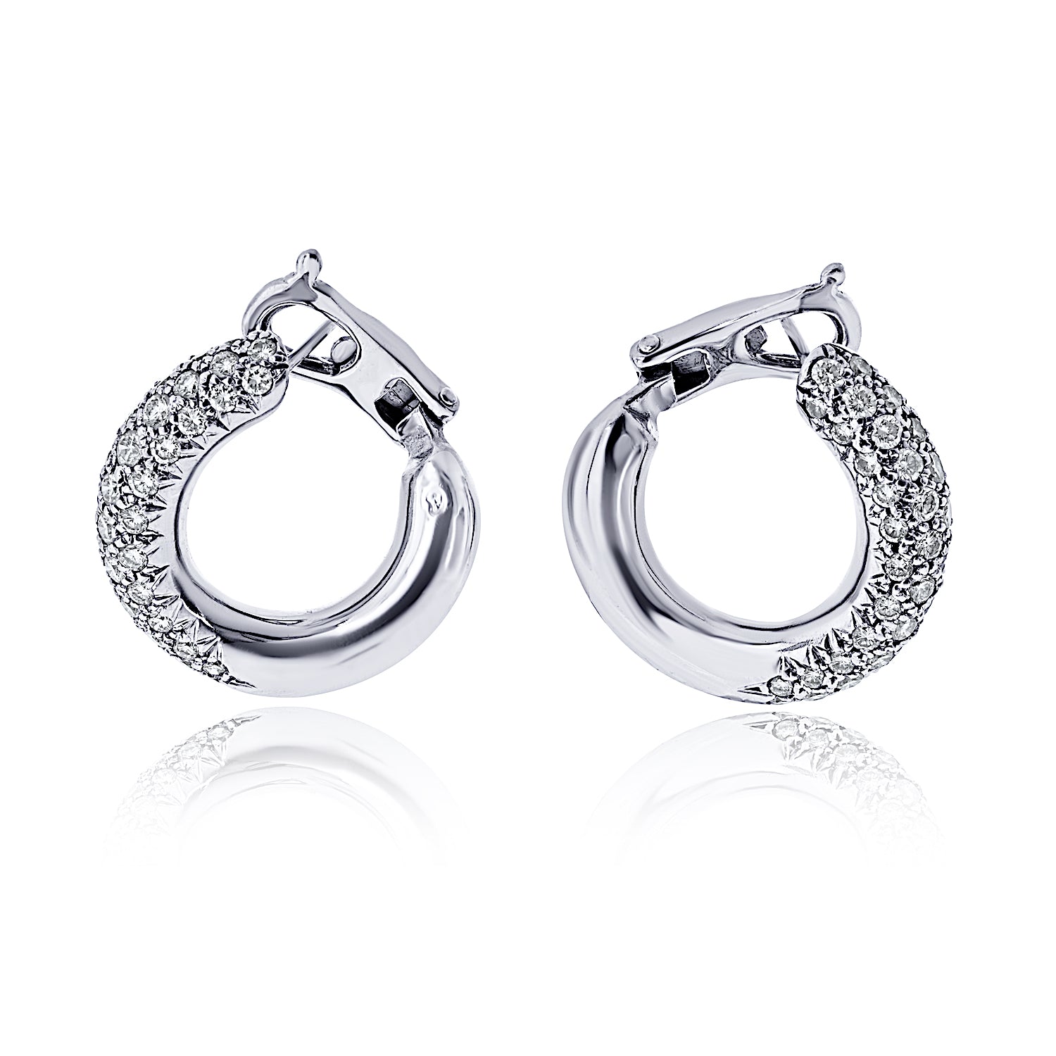 Van Cleef & Arpels Circa 1980's 18K White Gold Pave Diamond Hoop 1.00cttw Earrings