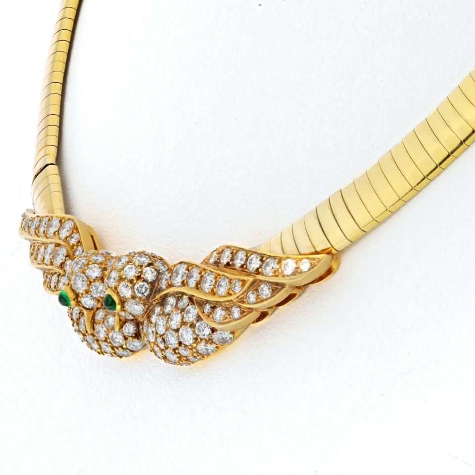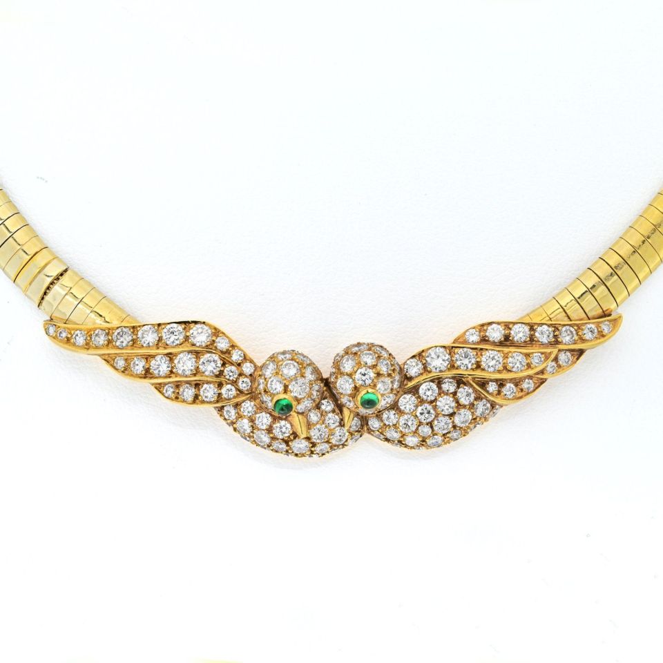 Designed to sit high on the neck, the necklace has a circumference of 14.75 inches, making it a stunning statement piece for any occasion. Whether you're attending a gala, a cocktail party, or simply want to add a touch of vintage glamour to your collection, this Van Cleef & Arpels Lovebirds Necklace is a rare find that will be cherished for generations.