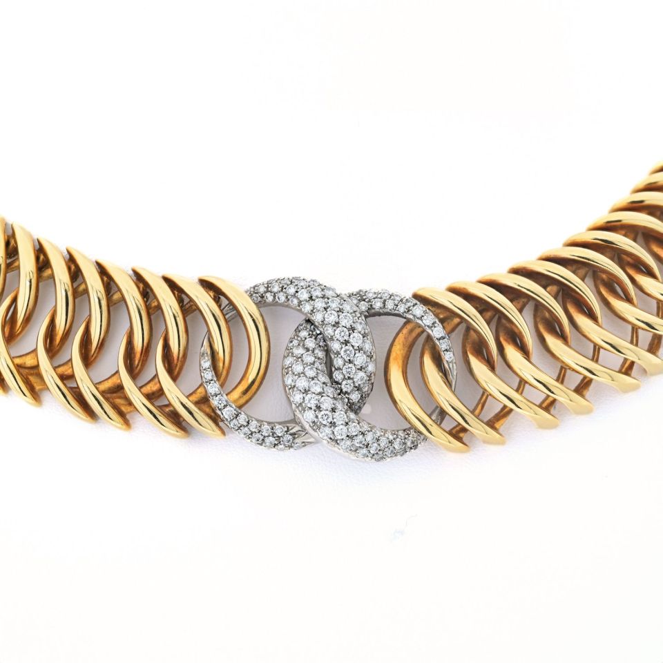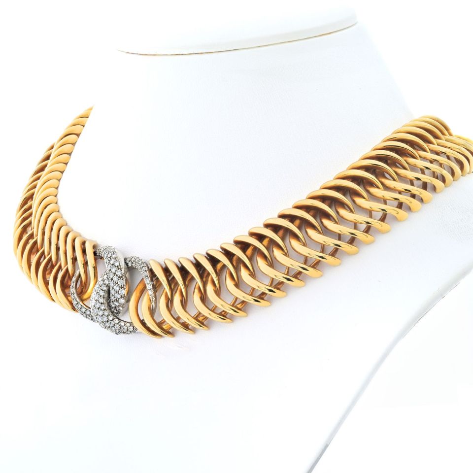 Verdura Collar Platinum & 18K Yellow Gold Double Crescent Pave Diamond Link Necklace